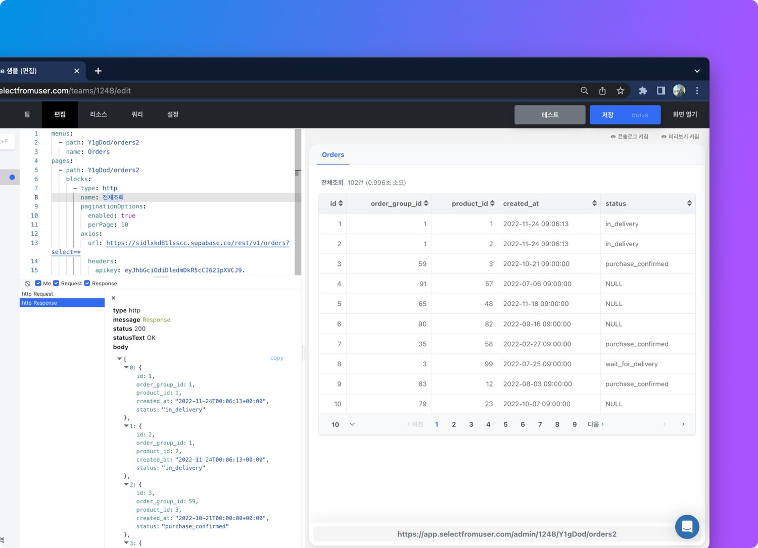 어드민 편집자를 위한 콘솔로그 기능이 추가되었습니다. 이제 페이지를 만드실 때 API나 SQL 쿼리의 데이터 요청과 응답 결과값을 볼 수 있습니다.