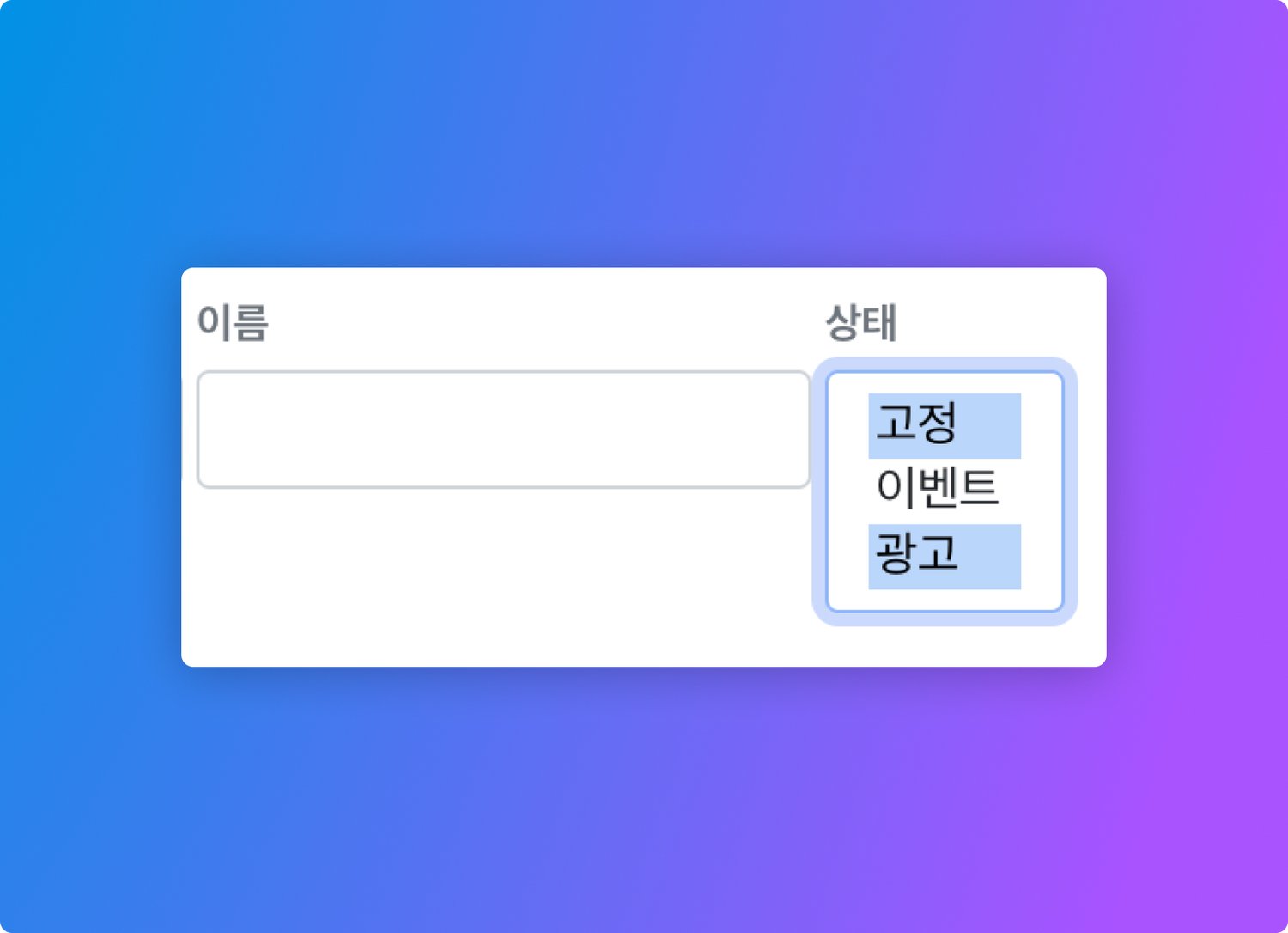 드롭다운의 복수 선택지에서 데이터를 고를 수 있습니다. 복수 데이터를 입력해야할 때 사용해보세요.