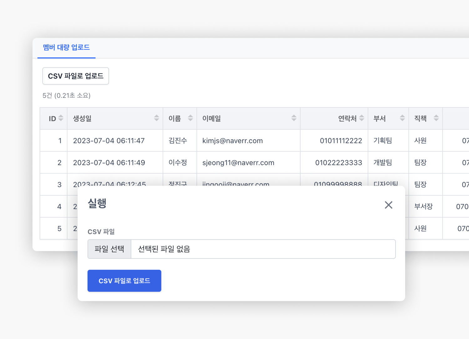 엑셀이나 CSV 파일로 데이터를 가져와 DB에 저장시킬 수 있습니다.